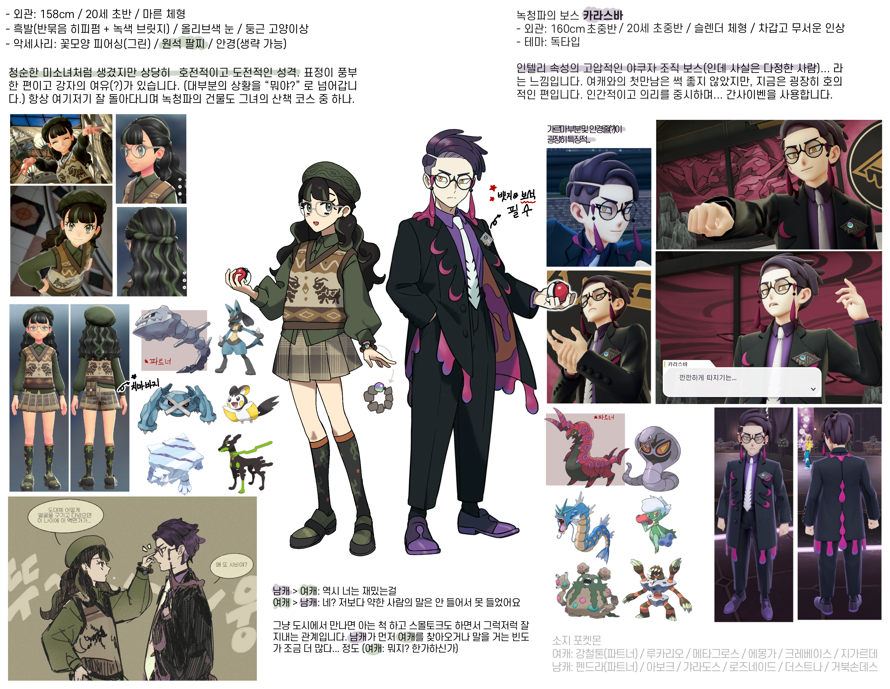 | - 의상, 구도, 표정, 분위기 등등: 오마카세로 부탁드립니다. (자아도 없고 고집하는 캐해석도 없습니다...) - 관계성: 장난꾸러기 여자 vs 그런 여자를 못 말려하는 남자(처럼 보이지만 제법 즐기고 있음) - 소품: 몬스터볼(다크볼, 헤비볼), 커피, 초밥 (너무 일관성이 없는데?! 싶으시면 일본도, 금화 같은 와펜풍으로 부탁드립니다...) +) 표정은 지정이 편하실 경우: 서로를 바라보면서 씨익 웃고있는.. |